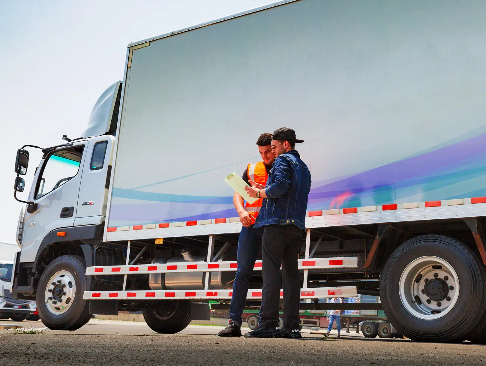 Cabina moderna con parrilla cromada, faros de alta intensidad y deflector de aire que reduce resistencia. Su estructura semiflotante y volante ajustable ofrecen comodidad sin perder presencia industrial.