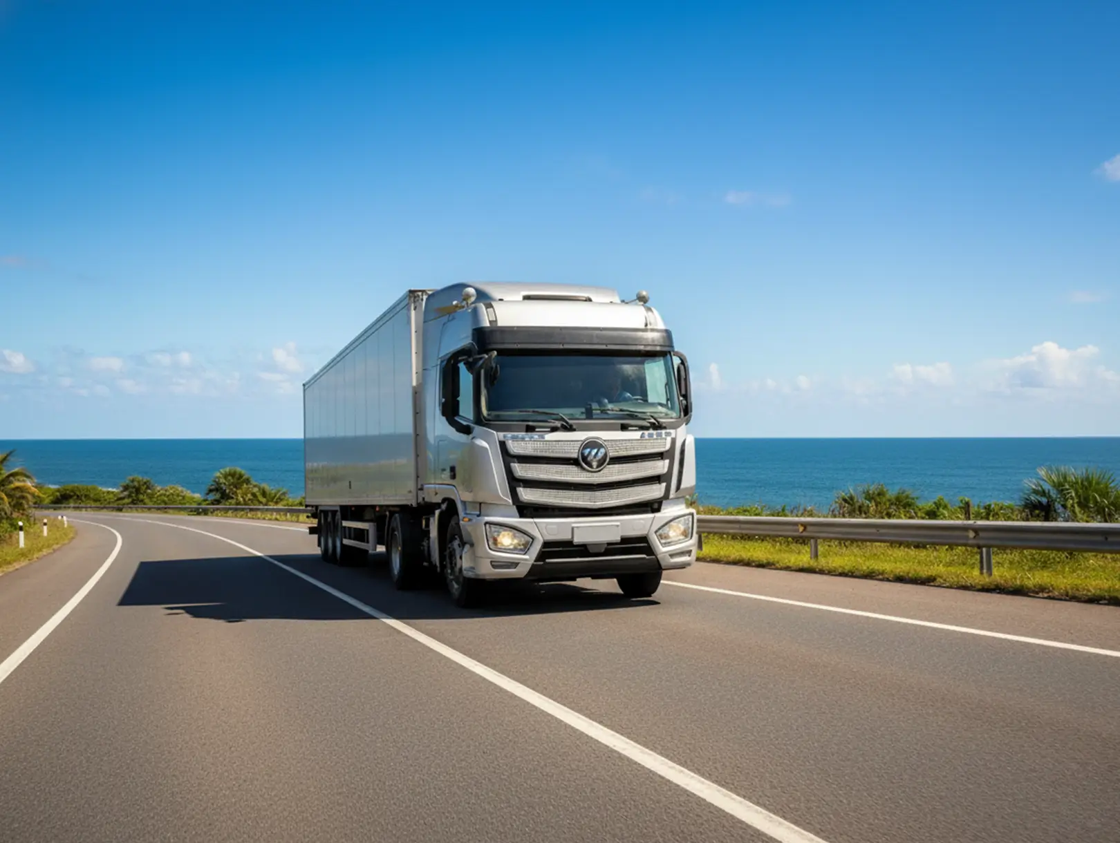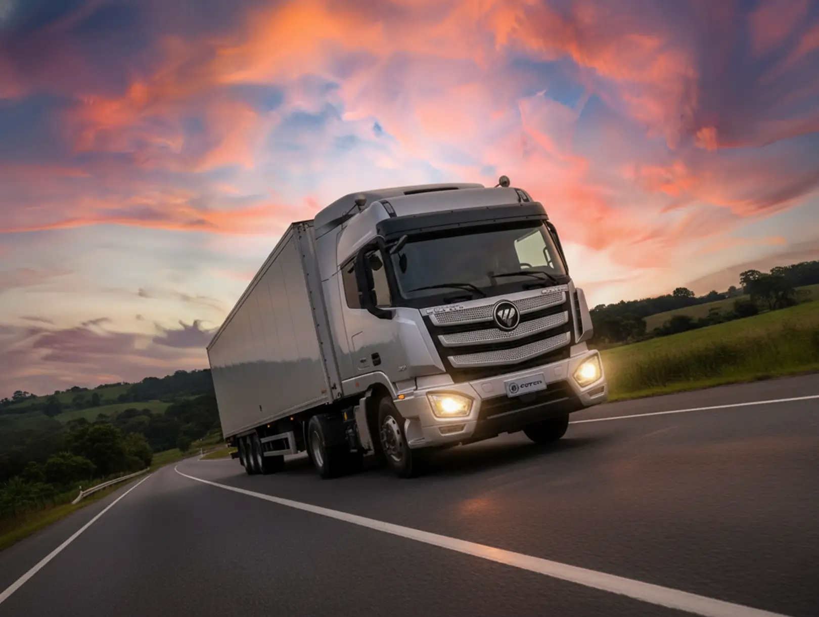 Diseño robusto, proporciones equilibradas y gran despeje. Su frente dominante y cabina de gran visibilidad reflejan poder y confianza para transporte pesado..