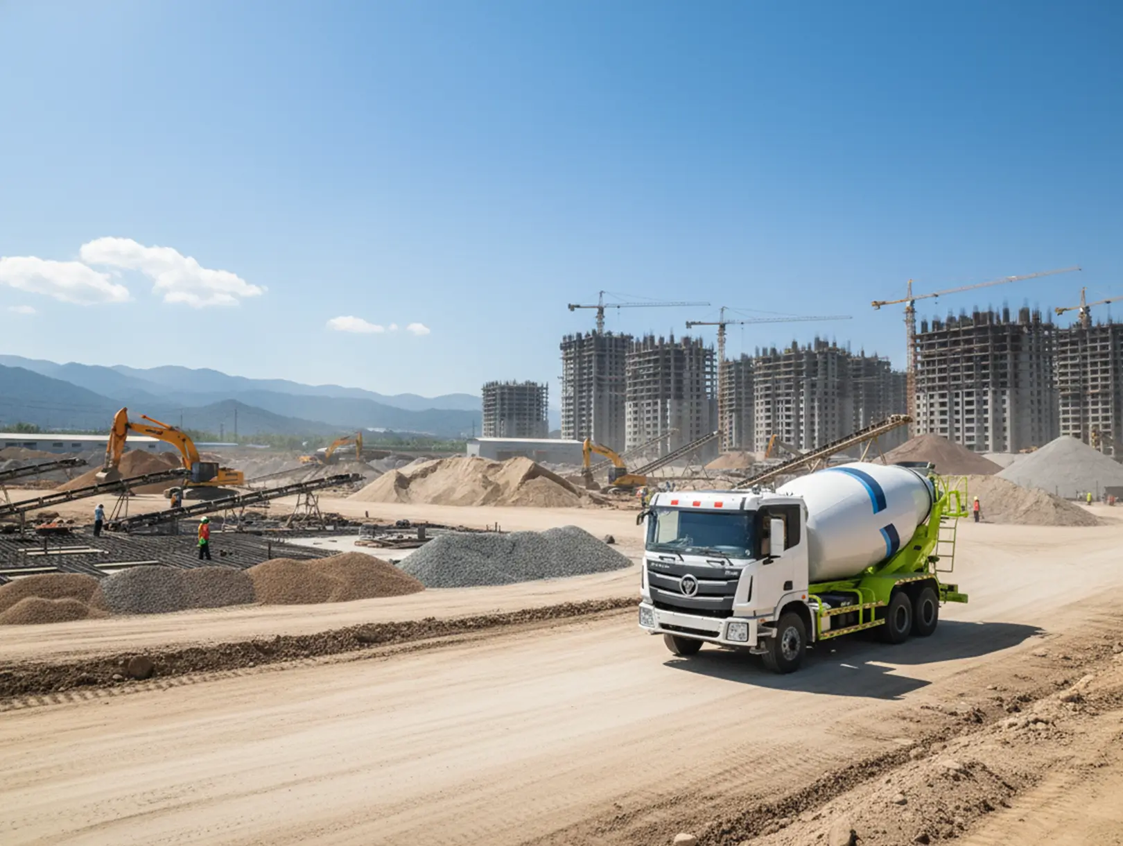 Motor Cummins ISGe3-350 HP, torque 1 800 Nm, transmisión Fast 9 velocidades. Tanque de 92 galones y chasis robusto para mezcla constante en obra.